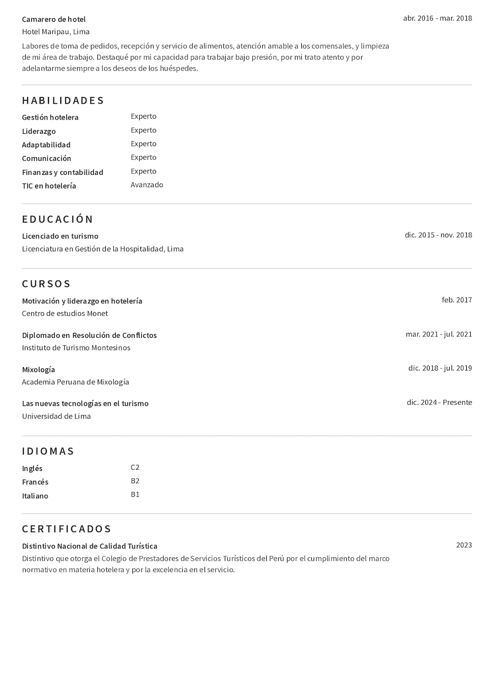 Claridad y enfoque: presenta solo la información importante, lo que garantiza que la atención del empleador se centre en las habilidades y los logros clave.